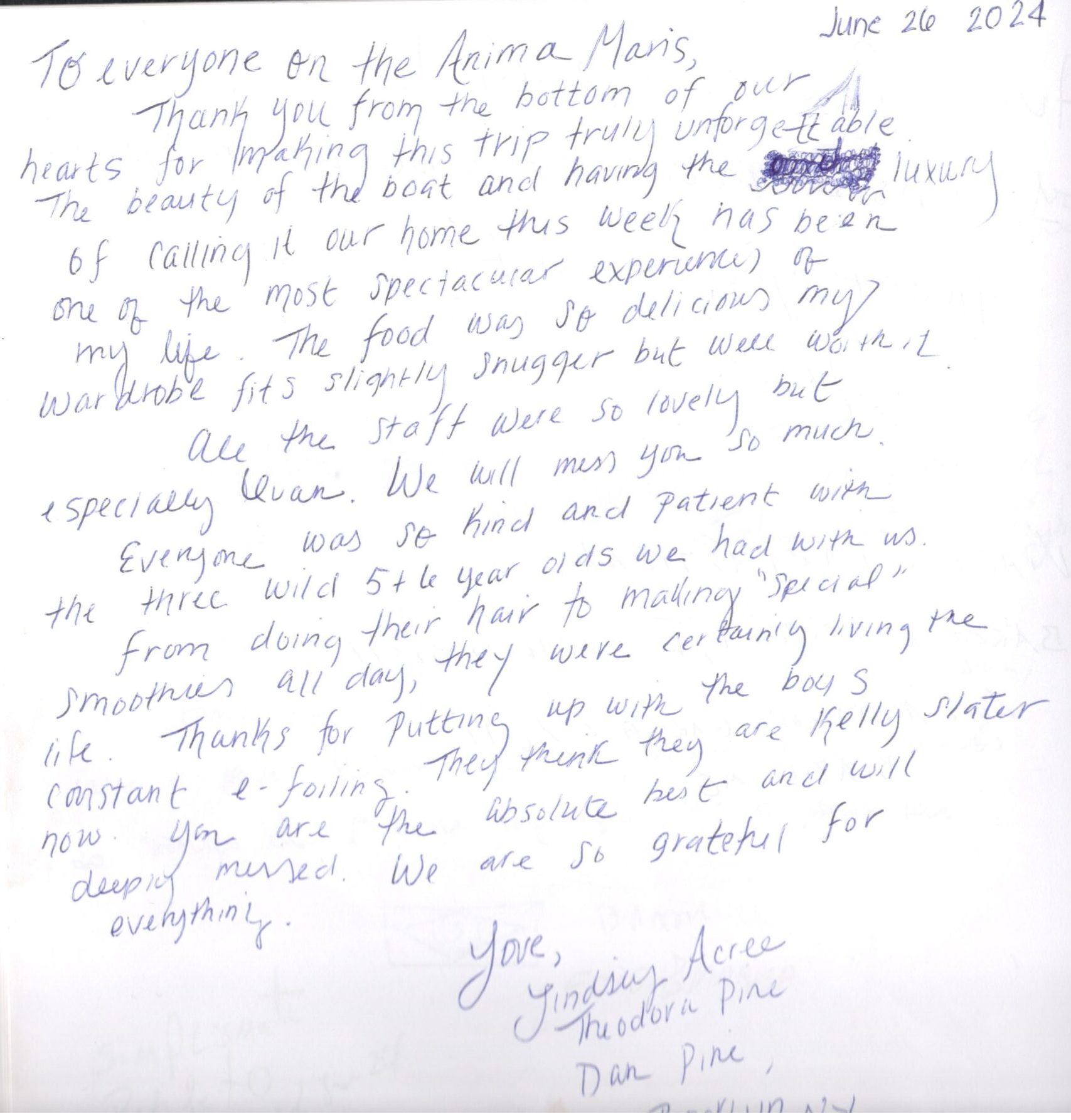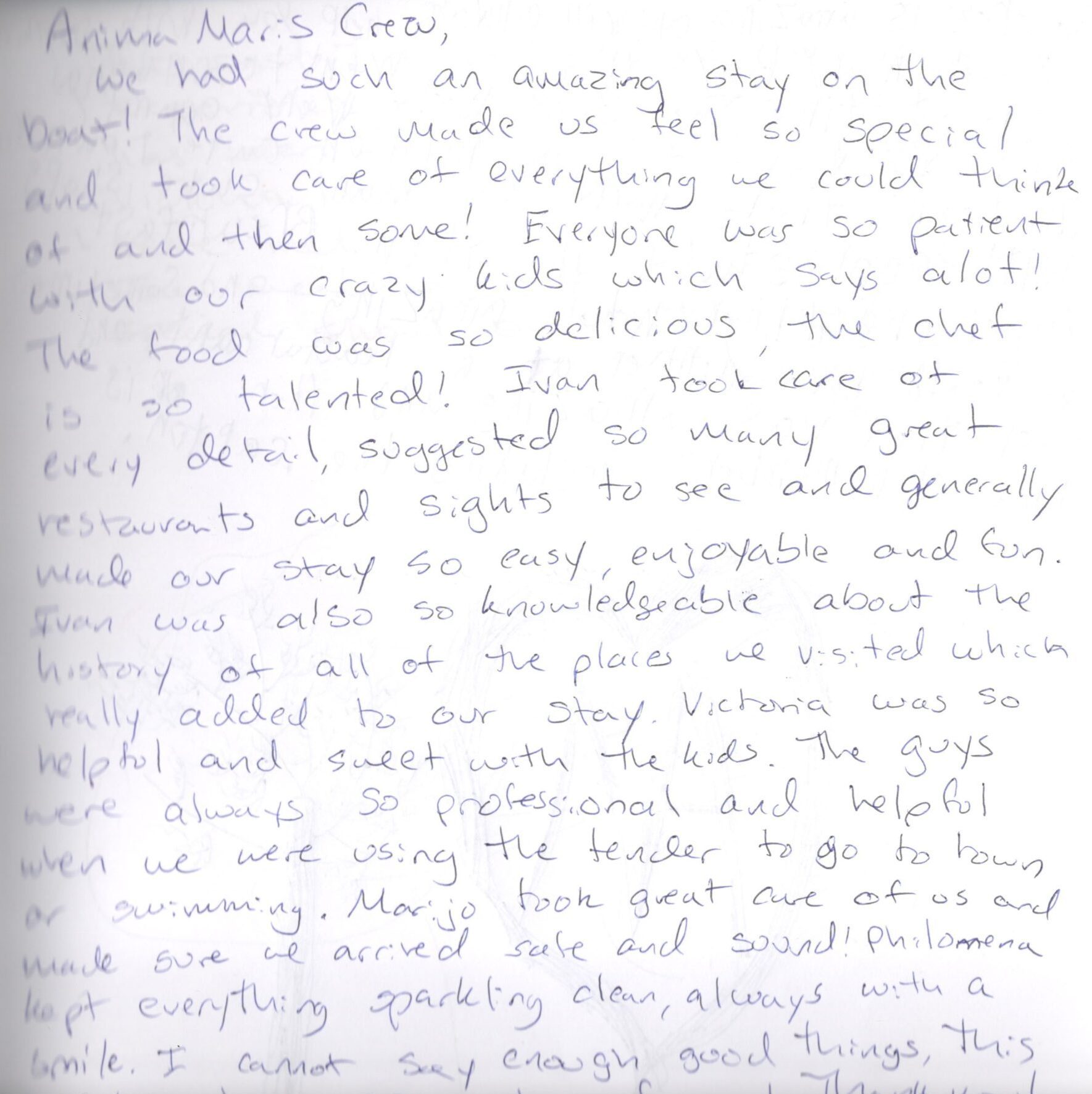 We had such an amazing stay on the boat! The crew made us feel so special and took care of everything we could think of and then some! Everyone was so patient with our crazy kids which says a lot!