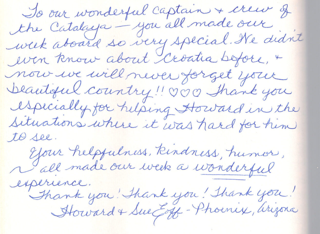 You all made our week aboard so very special. We didn’t even know about Croatia before, + now we will never forget your beautiful country!! ♥♥♥ Thank you especially for helping Howard in the situations where it was hard for him to see.