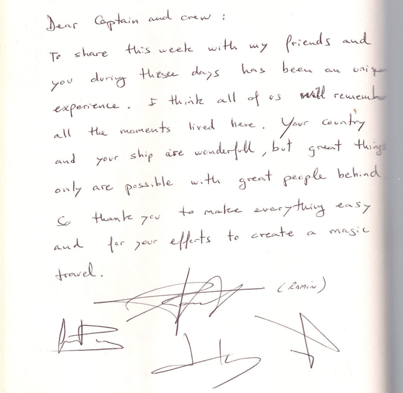 To share this week with my friends and you during these days has been an unique experience. I think all of us will remember all the moments lived here. Your country and your ship are wonderful, but great things only are possible with great people behind.