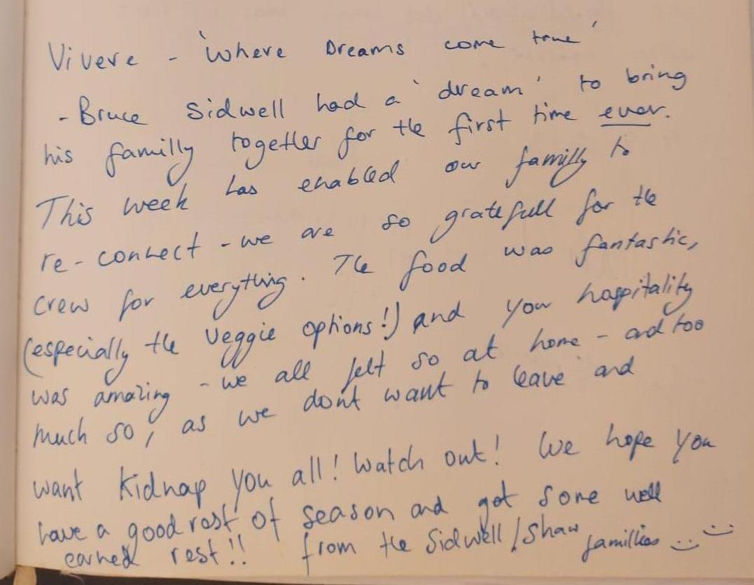 Bruce had a dream to bring his family together for the first time ever. This week has enabled our family to re-contact – we are so grateful for the crew for everything.